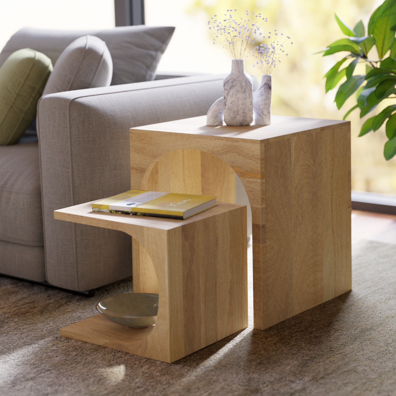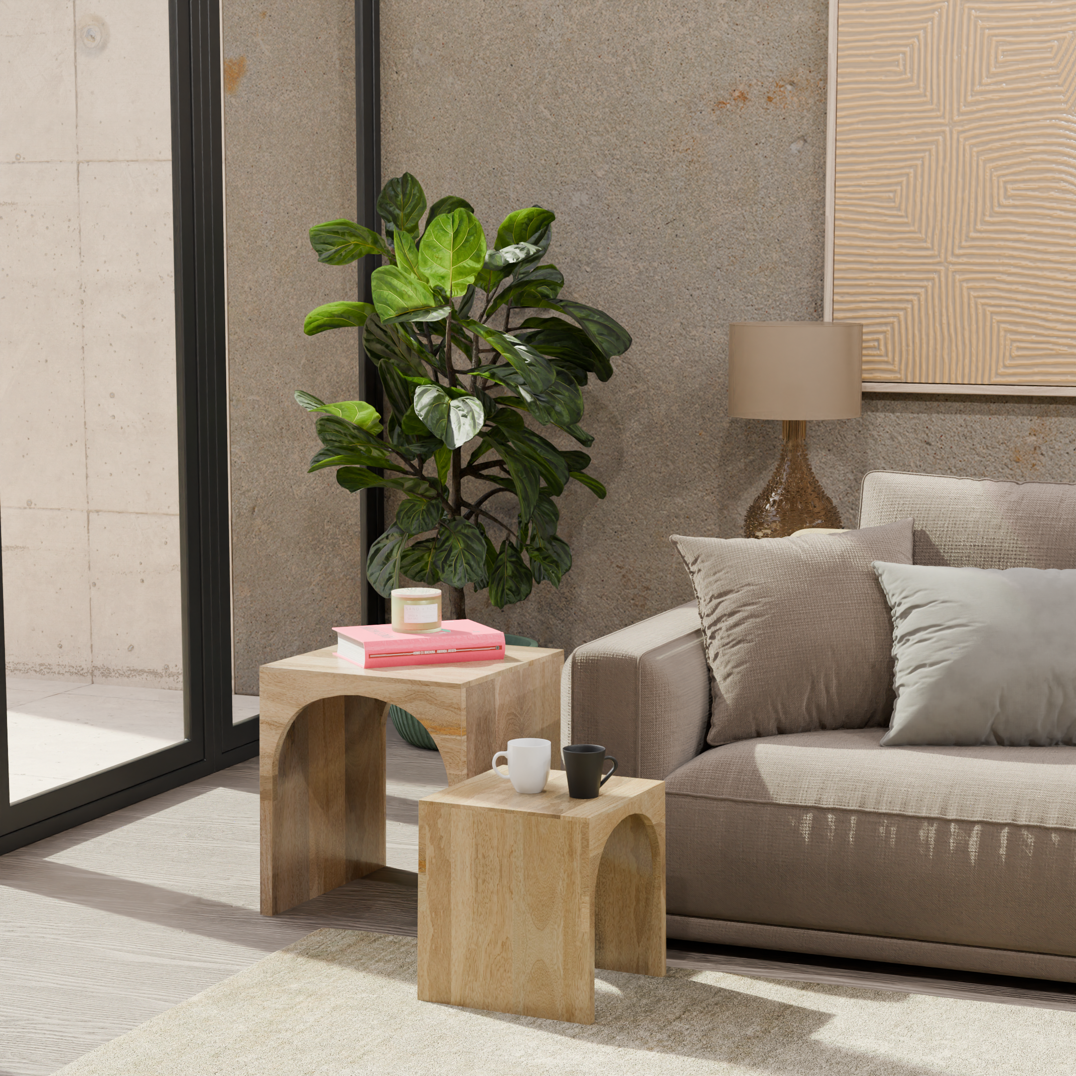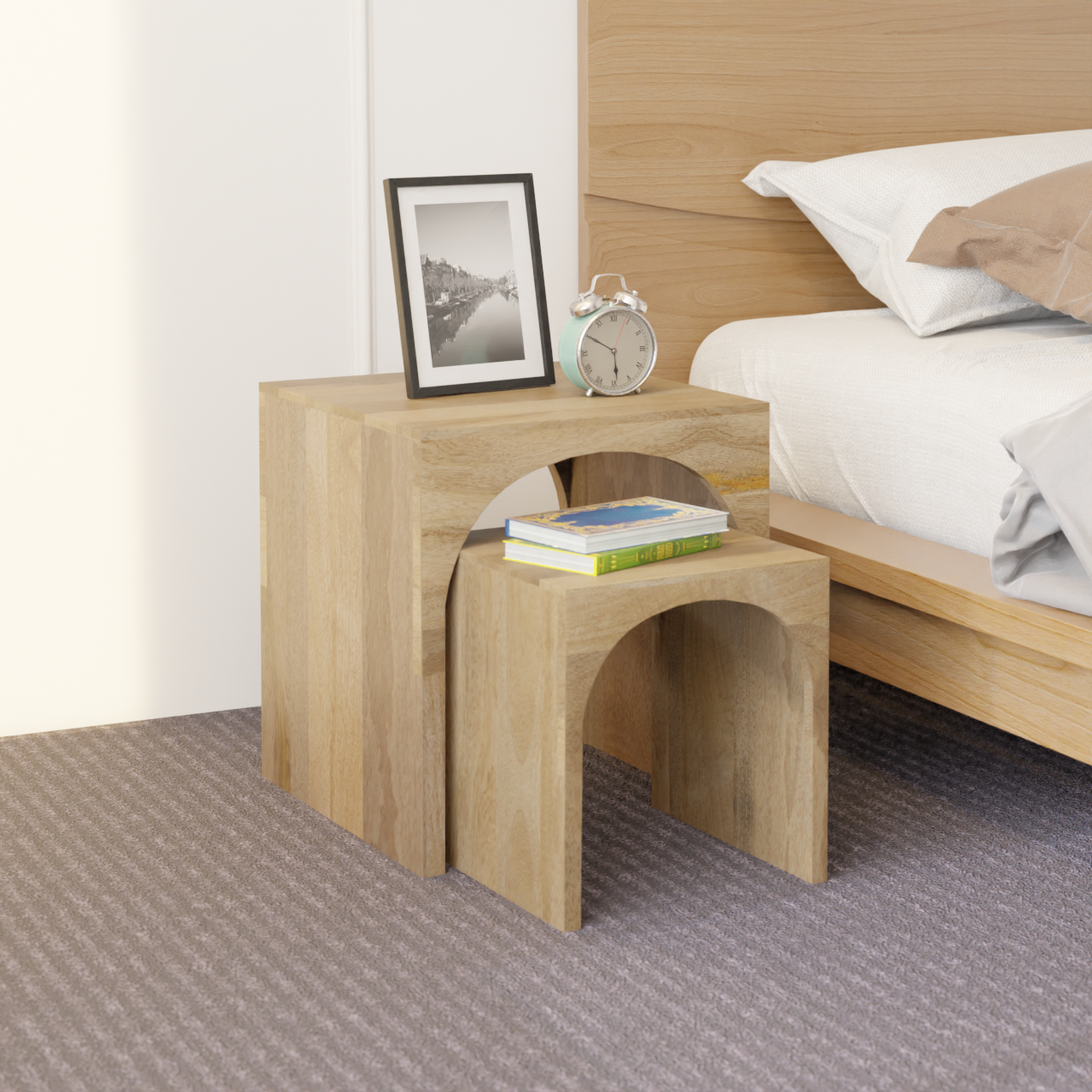Arch Duo Mango Wood Nesting Tables - Mango Natural Finish