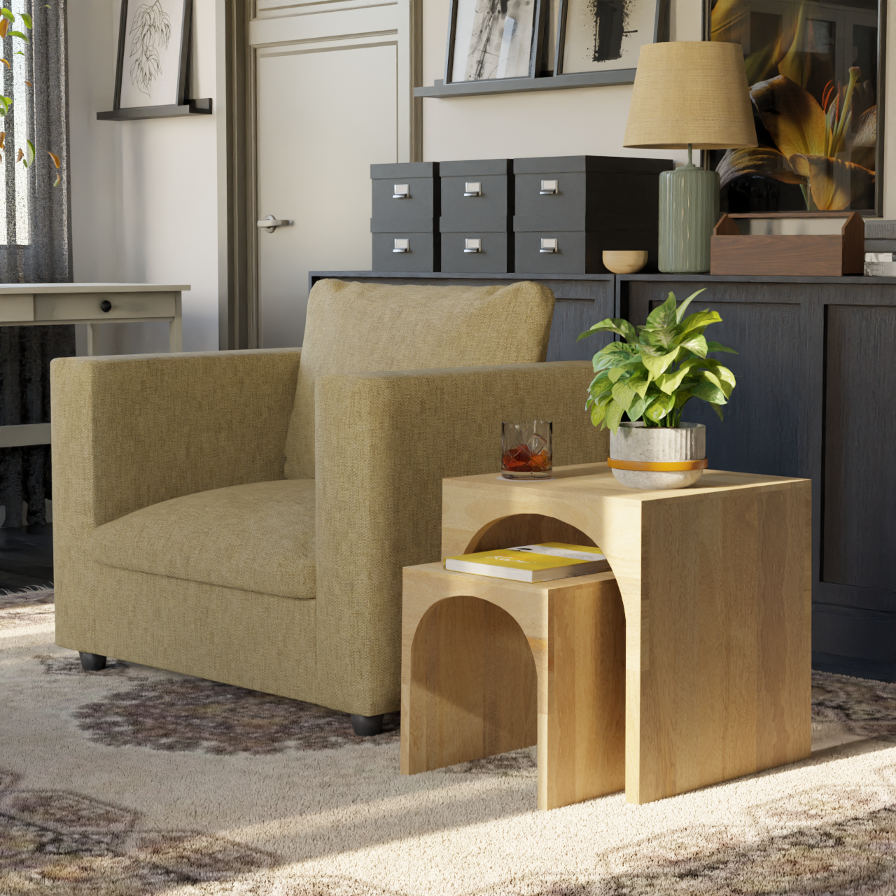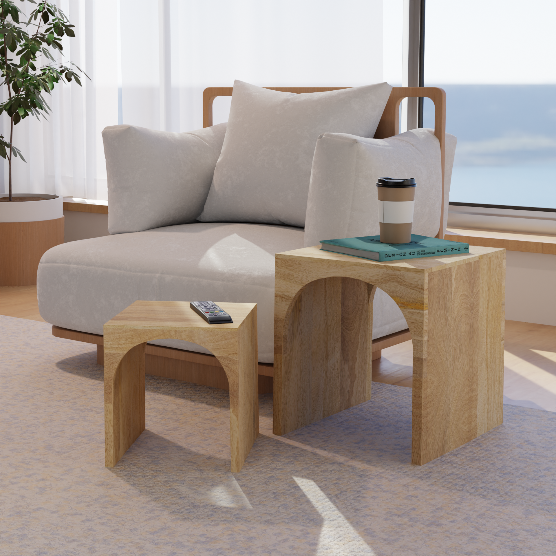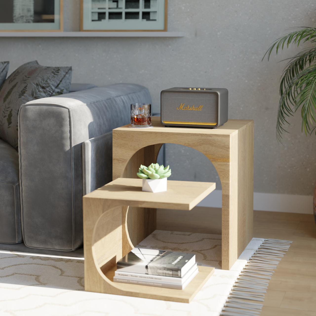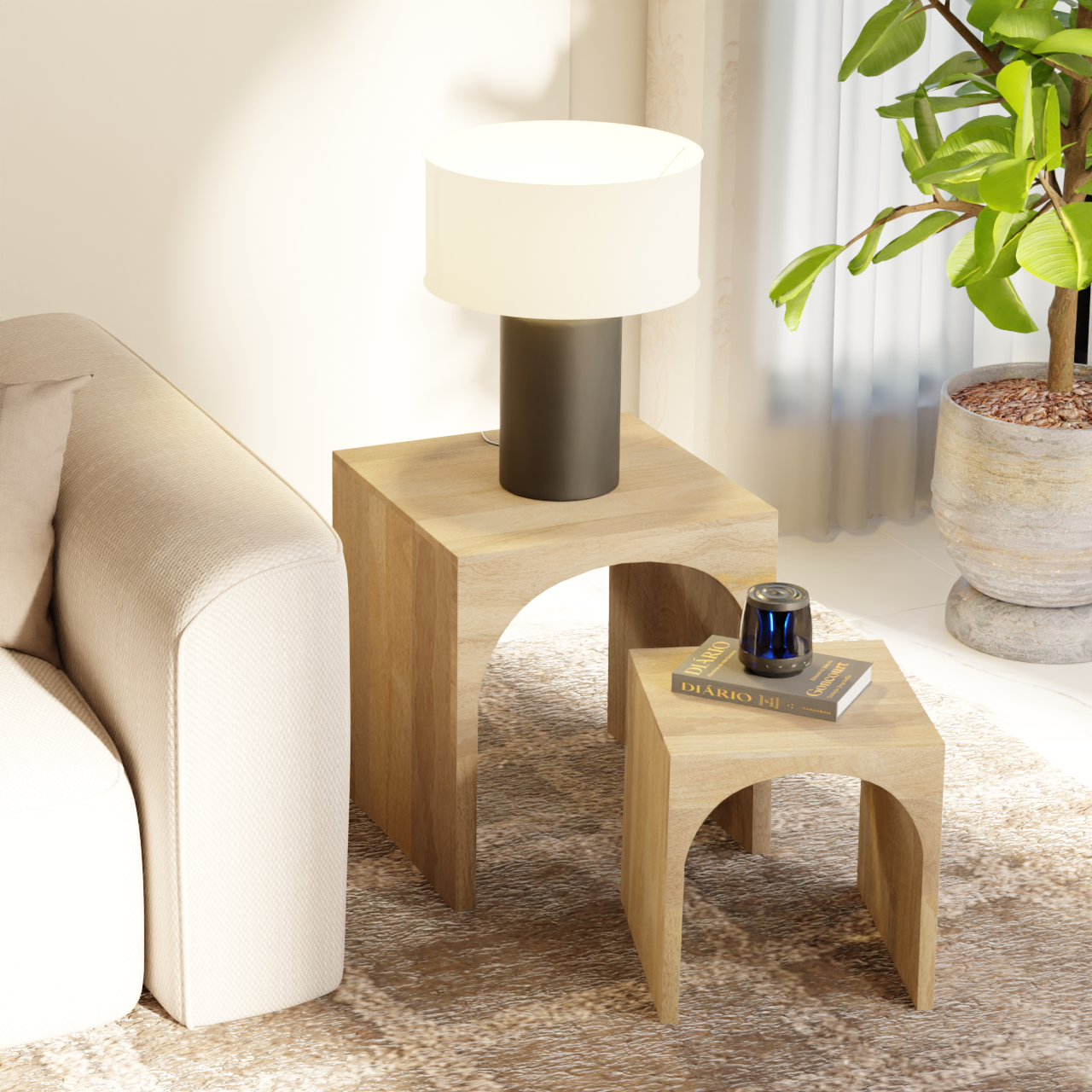 Arch Duo Mango Wood Nesting Tables - Mango Natural Finish